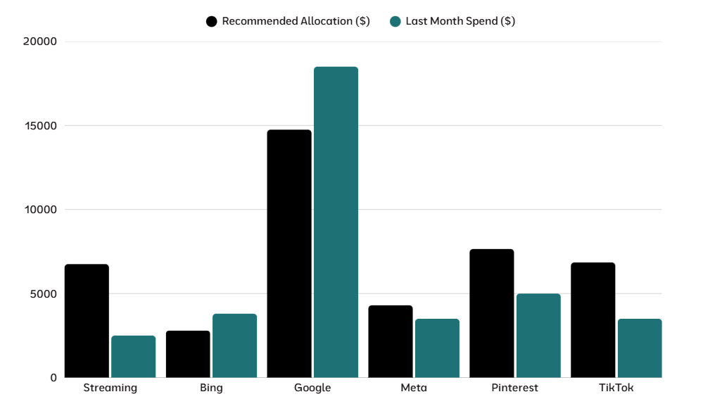 It shows you exactly where your budget should be for each channel and what adjustments, if any, should be made. It takes the guess work out of budget adjustments and removes risk from your advertising strategy.